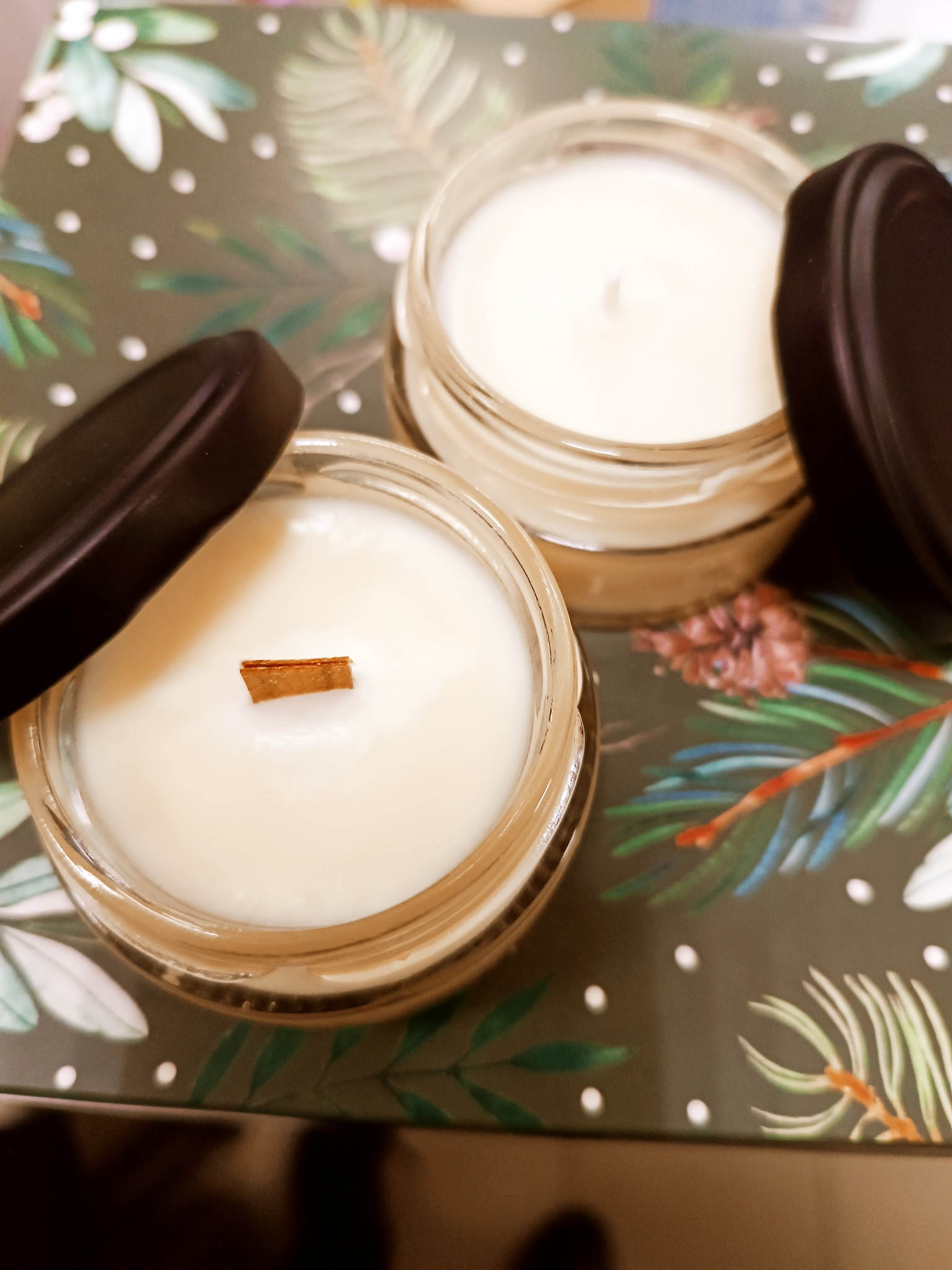 Ароматическая свеча ручной работы изготовлена из соевого воска.