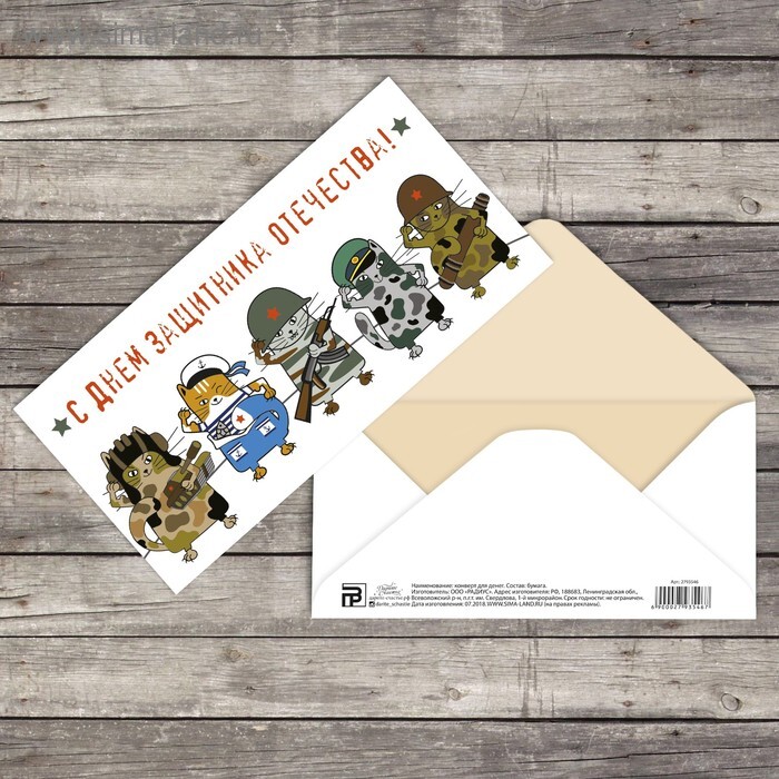 Конверт для денег «23 Февраля», котофлот, 16,5 × 8 см