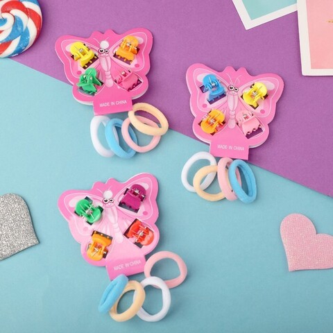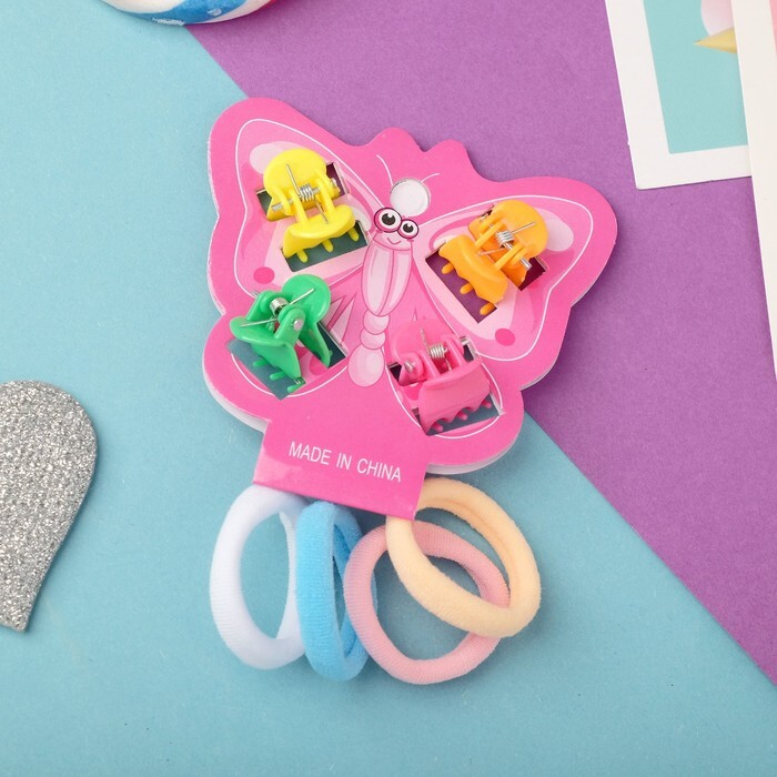Набор для волос "Бабочка" (4 краба, 4 резинки) цветные