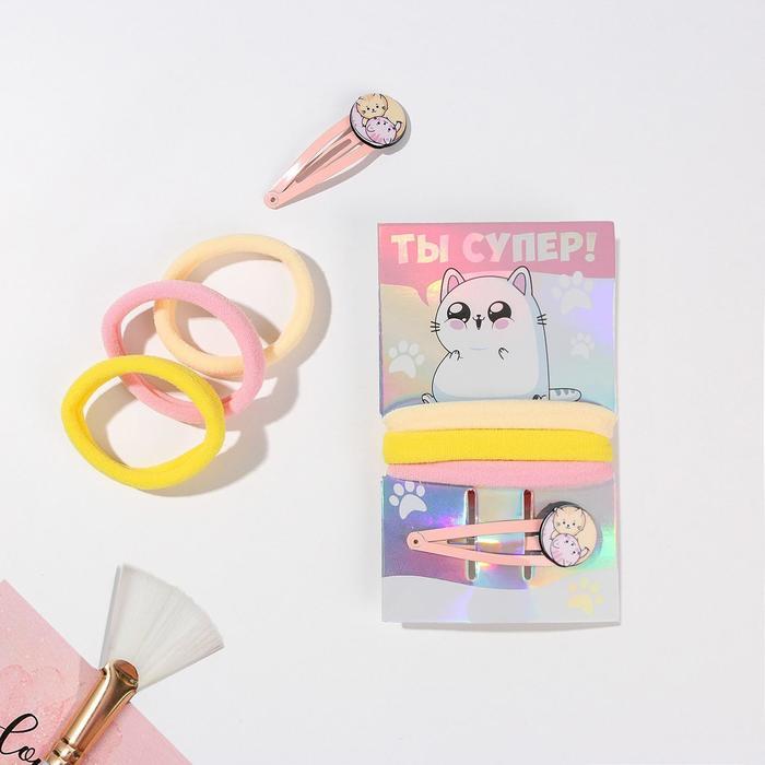 Набор заколка и резинки «Ты супер!», d= 3,5 см