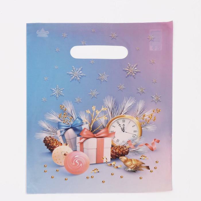 Пакет "Часы с подарками", полиэтиленовый с вырубной ручкой, 30 х 23 см, 30 мкм