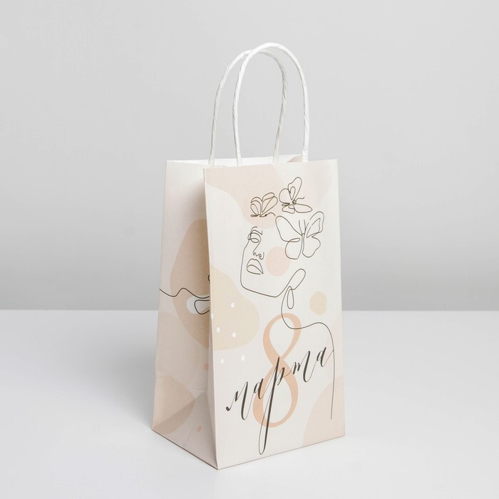 Пакет подарочный крафтовый «Нежный», 12 × 21 × 9 см