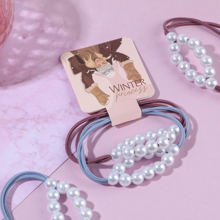 Резинки для волос с бусинками "Winter princess", d= 5,5 см.